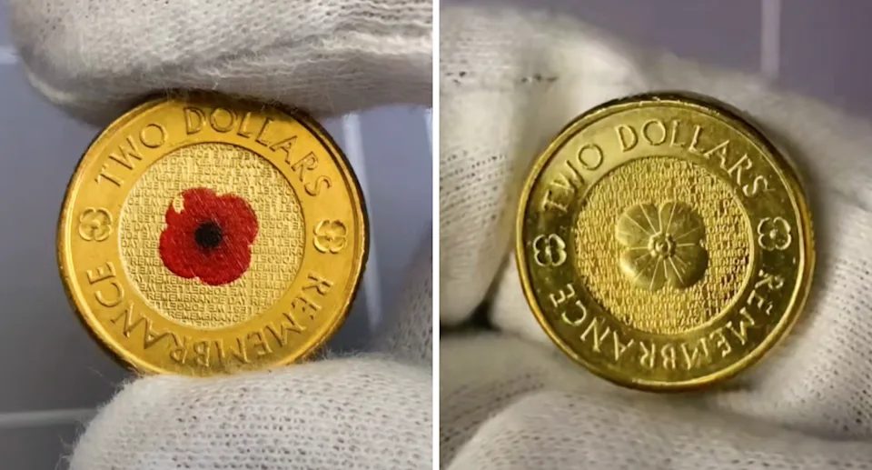 红罂粟与金罂粟2元硬币每枚市场价分别达300与60澳元,图源:TikTok/@thehistoryofmoney