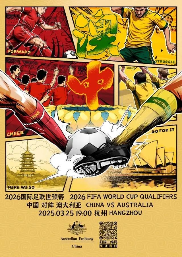 澳洲都市报3月25日讯(记者 陈荣)2026年国际足联世界杯亚洲区预选赛迎来一场焦点之战,澳大利亚国家男子足球队(Socceroos)将于今晚19点在杭州奥体中心体育场挑战中国国家男子足球队。这场比赛对双方而言都至关重要,胜负将直接影响各自的出线前景。